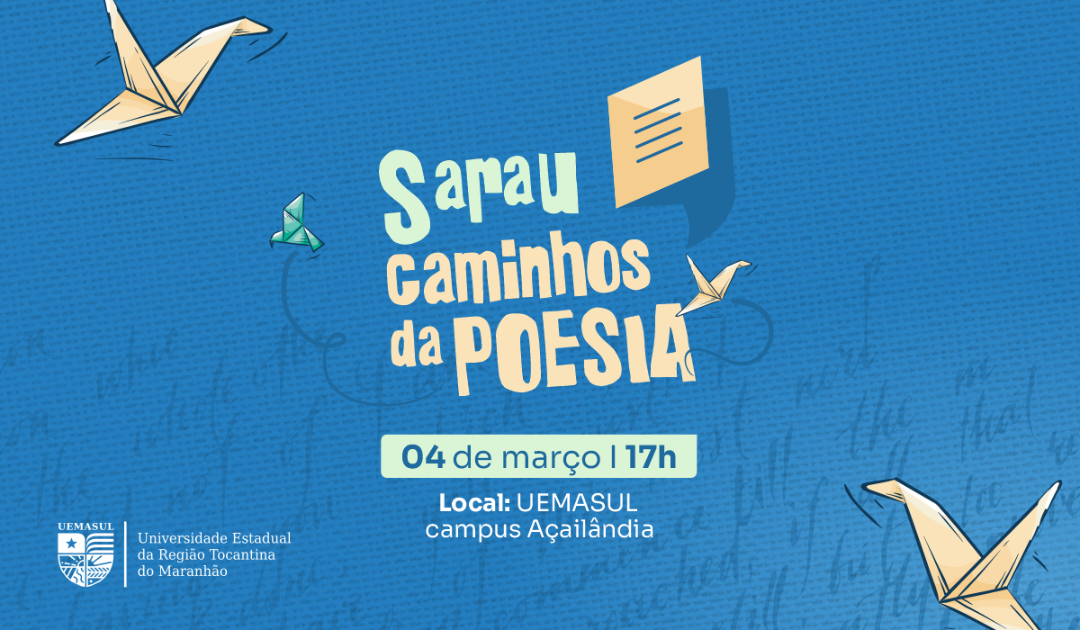 O curso de Letras/Português do Centro de Ciências Humanas, Sociais, Tecnológicas e Letras (CCHSTL/campus Açailândia), realizará no dia 04 de março, o sarau Caminhos da poesia. O evento encerra a disciplina de Estudos do texto poético. A proposta irá fomentar a poesia enquanto arte no cotidiano da universidade, visando principalmente os autores locais que fazem parte do corpo discente da instituição, e da cidade.